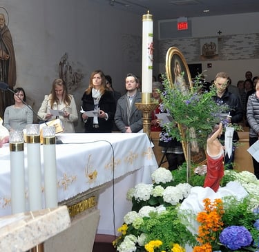Na Mszy św. o godz. 13:00, która była Mszą św. wspólnotową WŻCh złożyło przyrzeczenia 54 osoby w tym 28 osób z naszej wspólnoty i 6 „Sympatyków WŻCh”. Drugą, co do liczebności osób podejmujących Duchową Adopcję, była Msza św. dla dzieci o godzinie 11:00. Na niej, przyrzeczenia złożyli nie tylko dorośli, ale i kilkoro dzieci pod opieką swoich rodziców. „Tylko kochając uczymy się miłości” – oto zdanie z obrazka jakie maluchy dostały na pamiątkę tego wydarzenia oraz obchodzonego w tym roku dziewiątego kwietnia, Dnia Świętości Życia. Jakże piękne i prawdziwe słowa. Uśmiechnięte twarze świadczyły o tym jak wiele szczęścia kryje się w dawaniu.