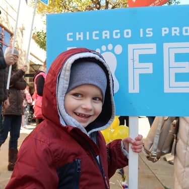 Poranek 13 października był w tym roku wyjątkowo mroźny. Mimo to, po Mszy św. o godzinie 8:00 grupa osób z WŻCh, trzech kapłanów oraz kilka osób z Jezuickiego Ośrodka Milenijnego ruszyła pełna zapału pod klinikę aborcyjną w centrum Chicago. Miejsce to jest na rogu dwóch ruchliwych ulic: LaSalle i Division. Widać nas było z daleka: kolorowe transparenty, pęki żółtych balonów zwracały uwagę przechodniów. Nasza grupa z minuty na minutę powiększała się. Dochodziły znajome twarze i od czasu do czasu przyłączały się do nas przechodzące obok osoby pragnące pomodlić się z nami. Wielką radością była dla nas obecność kilkorga dzieci, które przypominały nam o tym za kogo się modlimy.