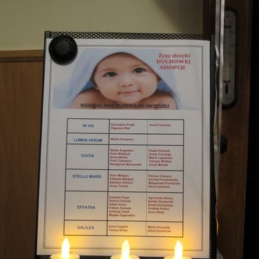 W niedzielę, 7 grudnia 2014 roku, podczas comiesięcznej Mszy św. wspólnotowej WŻCh, uroczyście przywitaliśmy 37 dzieci uratowanych od aborcji poprzez ofiarę modlitwy w intencji wyproszenia dla nich łaski narodzenia. Jednym z najwspanialszych darów złożonych na ołtarzu była lista 37 osób, które wzięły udział w Duchowej Adopcji Dziecka Poczętego i poprzez to przyczyniły się do dania świadectwa podstawowym wartościom chrześcijańskim jakim jest prawo do życia. Był to najpiękniejszy dar ofiarowany dzieciątku Jezus na zbliżające się święta Bożego Narodzenia.
