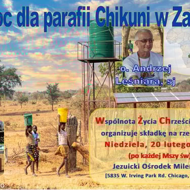 W dniach 19-20 lutego, 2022 roku Grupa apostolsko-misyjna “Grosz” Polskiej Wspólnoty Życia Chrześcijańskiego w Chicago, zorganizowała akcję pomocy dla parafii Chikuni w Zambii. Była to już trzecia z rzędu nasza akcja charytatywna na rzecz tej afrykańskiej misji.