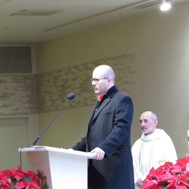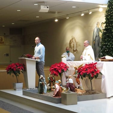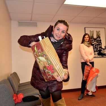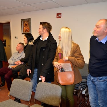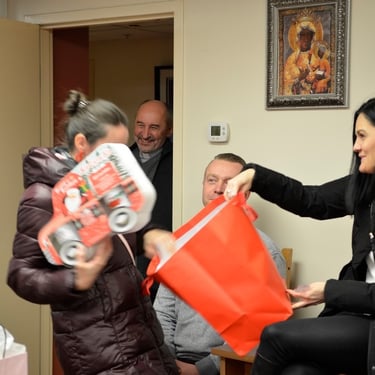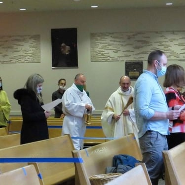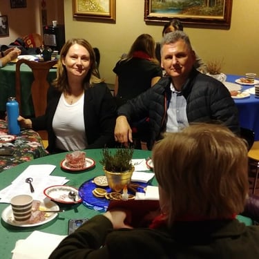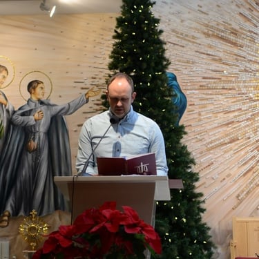 Dnia 9 stycznia 2021 roku obchodziliśmy Uroczystość Chrztu Pańskiego. Z tej okazji, na początku naszej Mszy wspólnotowej zostaliśmy obficie pokropieni wodą święconą. Po liturgii, kończącej w kościele okres Bożego Narodzenia zeszliśmy do kawiarenki na wspólne opłatkowe świętowanie. W uroczysty nastrój wprowadziło nas odśpiewanie kilku jeszcze kolęd. Po odczytaniu fragmentu Ewangelii, łamaliśmy się wszyscy opłatkiem składając sobie, z głębi serca płynące życzenia, na nadchodzący rok. Po tej oficjalnej części przyszedł czas na ucztę kulinarną. Raczyliśmy nasze podniebienia tradycyjnymi polskimi potrawami, takimi jak pierogi czy barszczyk z krokietem, a także mniej tradycyjnymi jak wyśmienita ryba po grecku. Gdy wszyscy zaspokoili już głód, przeszliśmy do salki obok, gdzie czekał na nas stół pełen prezentów-niespodzianek. Świetnie się bawiliśmy otwierając coraz to nowe prezenty, zamieniając je poprzez „podkradanie” ich innym i obronę tych dobrze trafionych w nasz gust. Ogromnym powodzeniem cieszył się gruby, różowy, pluszowy koc, który był obiektem pożądanym przez wiele osób, ale na końcu i tak trafił do swojej pierwotnej właścicielki Joasi. Na pewno sprawdzi się w długie zimowe wieczory, których wiele jeszcze przed nami w tym roku.