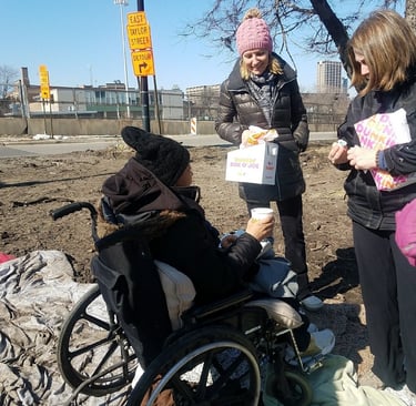 W sobotę 22 lutego pojechaliśmy z wizytą do bezdomnych. W akcji wzięło udział 5 osób. Pojechaliśmy do trzech miejsc gdzie bezdomni stworzyli sobie tzw. “miasteczka”. Zawieźliśmy im ciepłe ubrania, butle gazowe, warm-upsy, ciepłą kawę, kanapki, $10 gift cards do McDonalds i to co najważniejsze naszą uwagę i miłość.